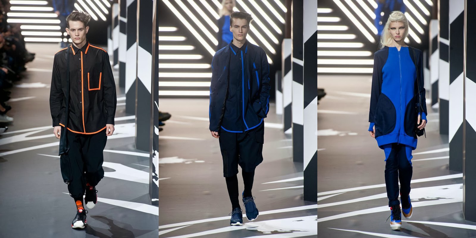 Finally debut of Y-3 on Paris Fashion Week. Yohji Yamamoto presented the Adidas collaboration for fall/winter 2014-15 collection. Mr Yamamoto explained his inspiration for presented collection by saying: "The collection is an homage to the couturiers of he 60s. I was also thinking of super heroes and the kind of clothes they wear. I brought these two worlds together".